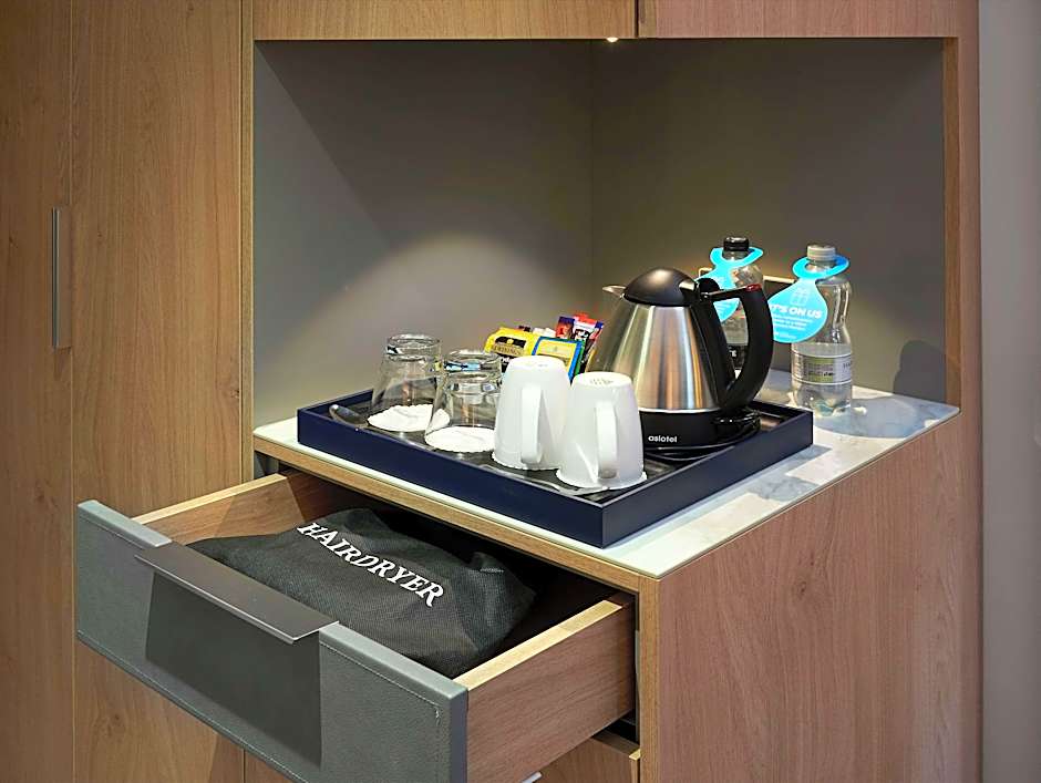 This contemporary, recently refurbished Junior Suite with special wellness features has one king bed and double sofa bed, 2 separate rooms - one bedroom and one lounge/dining and 40-inch LED TV, Wi-Fi, work space, bathrobe, slippers. The stylish bathroom has luxurious toiletries with a fluffy bathrobe and slippers. Wellness features include essential oil diffuser, Himalayan salt lamp, fruit smoothie, organic Hope and Glory teas, fruit-infused water, yoga equipment and a Wellness Evolve Set . Additional features include tea/coffee making facilities, USB socket, mini fridge, and safe.